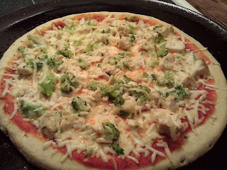 So yesterday, we had Chicken Divine and oh it was divine!!! Creamy goodness comfort food, low cal! I made a double batch, so I had leftovers I was going to freeze.. that is until the kids decided they wanted chicken pizza! Not wanting to thaw and saute MORE chicken, I had an idea! Pizza Divine?